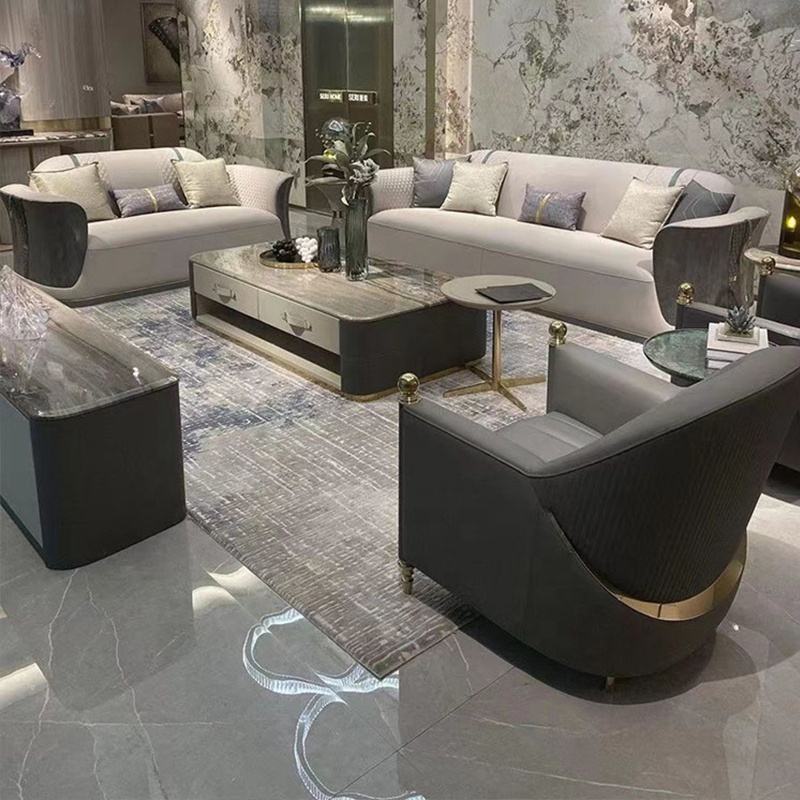 Europeo oro bianco italiano Royal Lounge mobili di alta qualità in pelle moderna divani di lusso soggiorno casa in legno divani Set