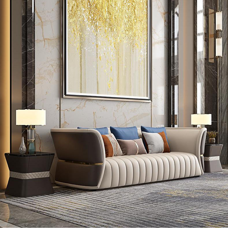 Set Divani di Lusso in Pelle Italiana Stile Europeo per Soggiorno, Arredamento di Alta Gamma per Grandi Unità e Ville, Forma a L Quadrata