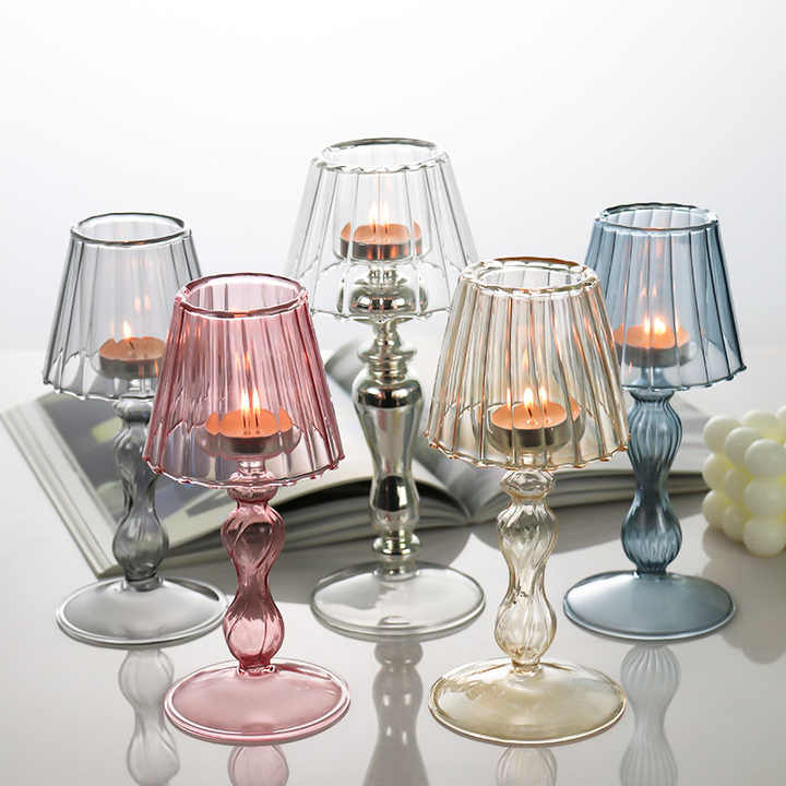 Portacandele in Vetro Stile Europeo, Lampada da Tavolo di Lusso per Decorazione Casa