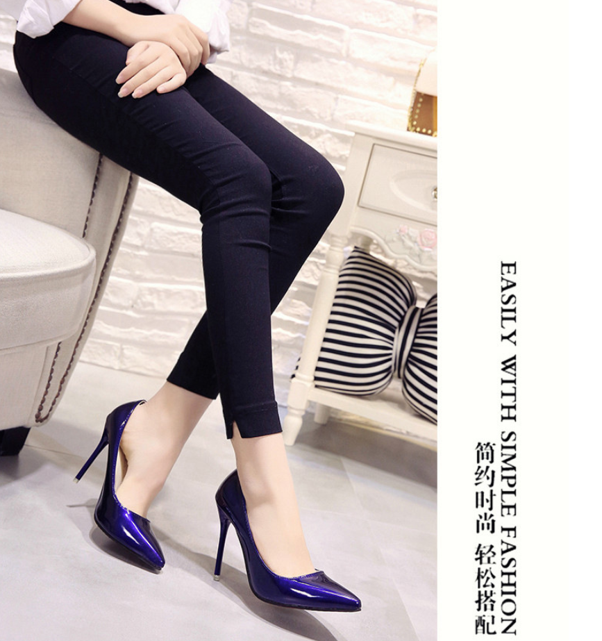 Scarpe europee di grandi dimensioni da donna con tacco alto colorate scarpe da lavoro alte per l'estate primavera scarpe nere con tacco da sposa a punta
