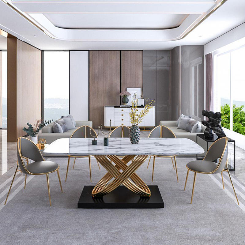 Lusso europeo può personalizzato tavolo da pranzo ristorante tavolo da pranzo Set tavolo da pranzo in acciaio inossidabile marmo