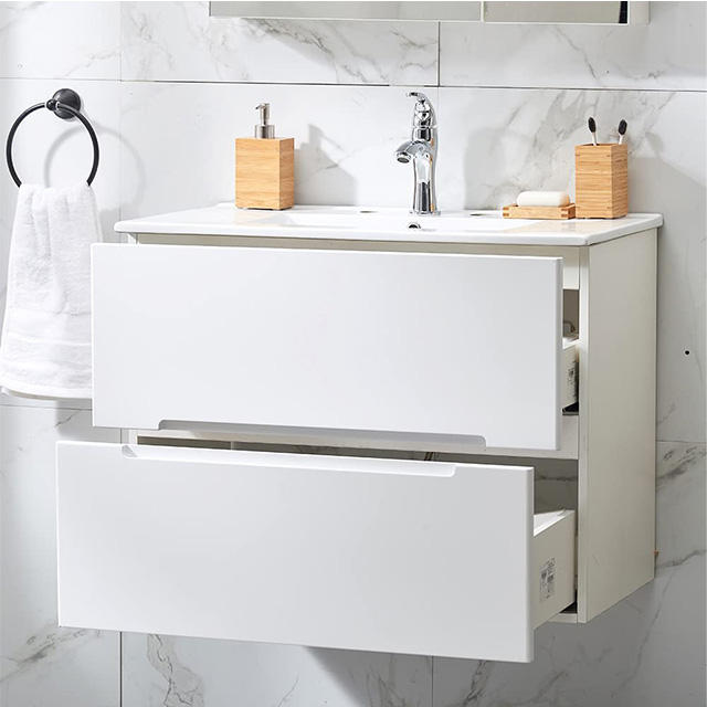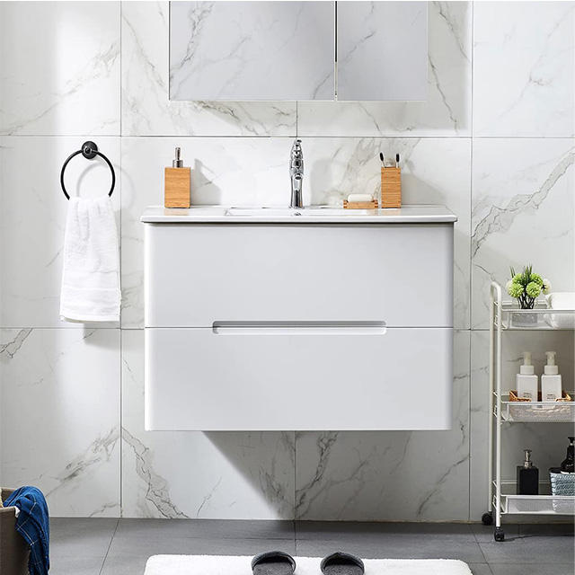 Mobile da Bagno Moderno da 30 Pollici con Lavabo, Montaggio a Parete, Finitura in PVC Bianco per il Mercato Europeo