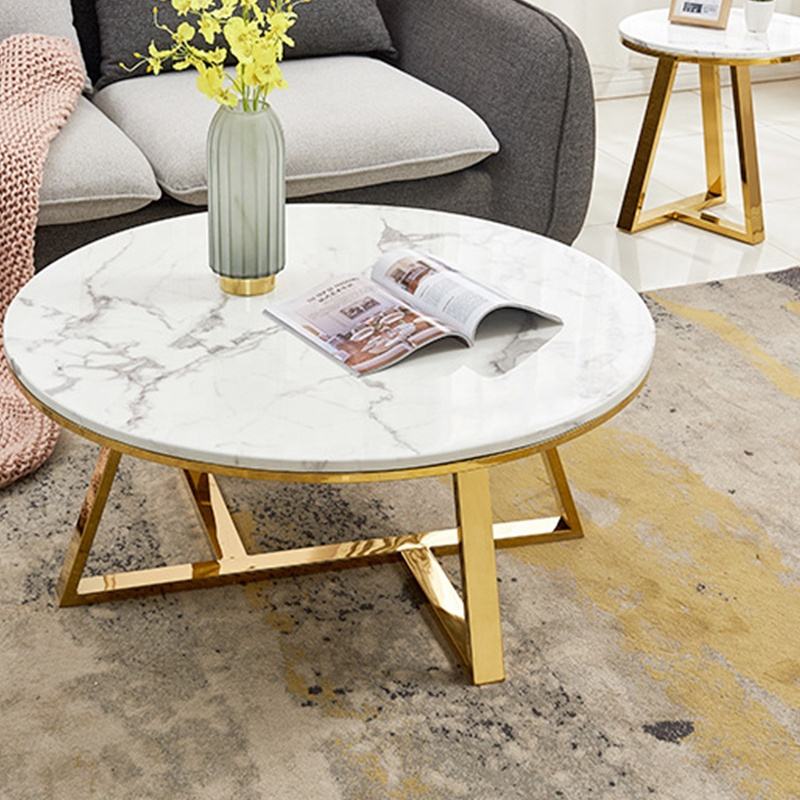 European Modern Living Room Furniture Stainless Steel Gold Marble Center Round Coffee Table