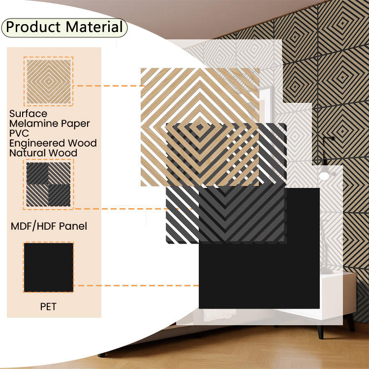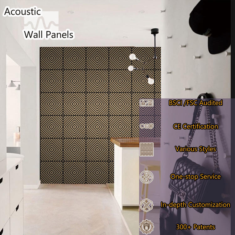 Pannelli Acustici Brevettati Europei in MDF, Superficie in Legno Insonorizzante, Rivestiti su 3 Lati, 60*60cm, Pannelli Acustici Quadrati