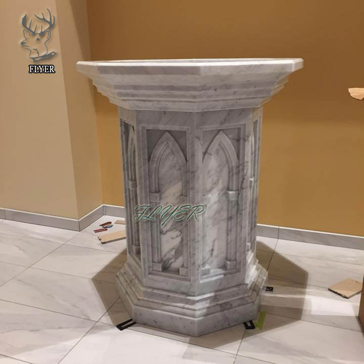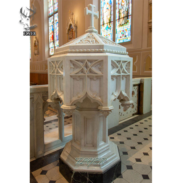 Fonte di Acqua Santa per Chiesa con Motivi Europei in Marmo Scolpito, Lavabo per Battesimo