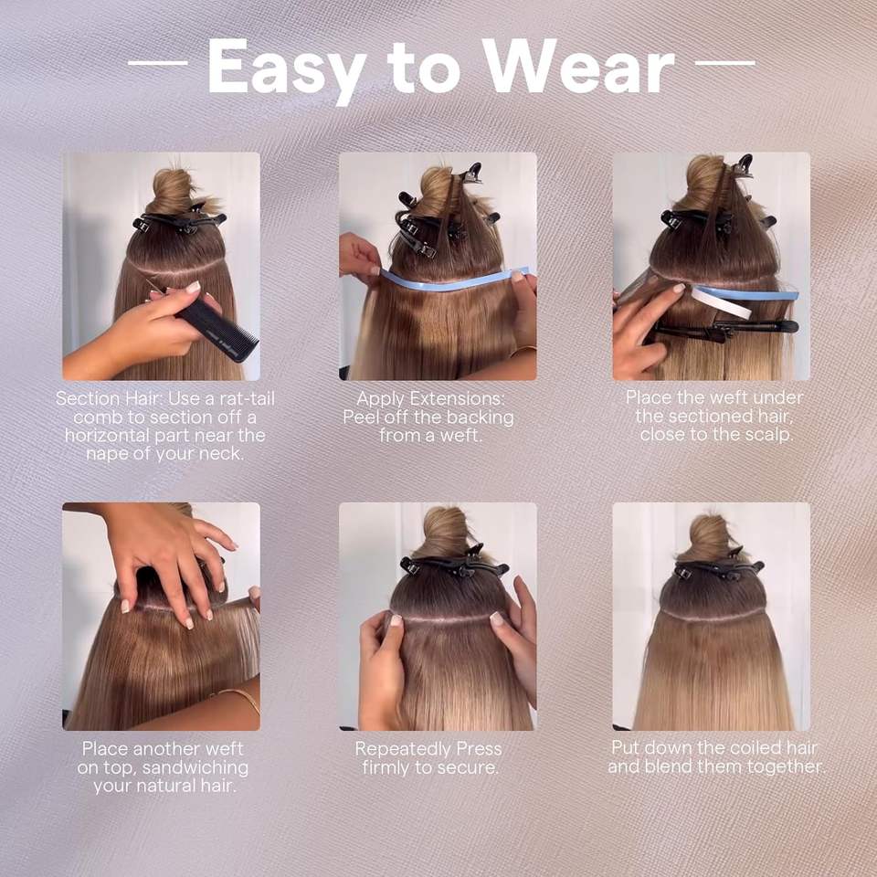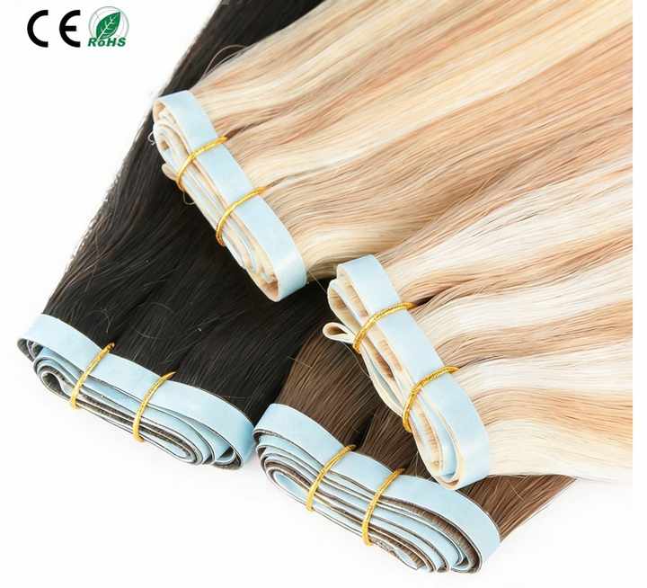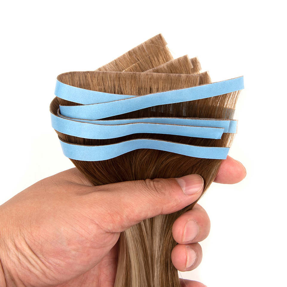 Extension di Capelli Veri Europei Remy Vergini di Alta Qualità, Doppia Trama, Nastro Invisibile, Colore Chiaro