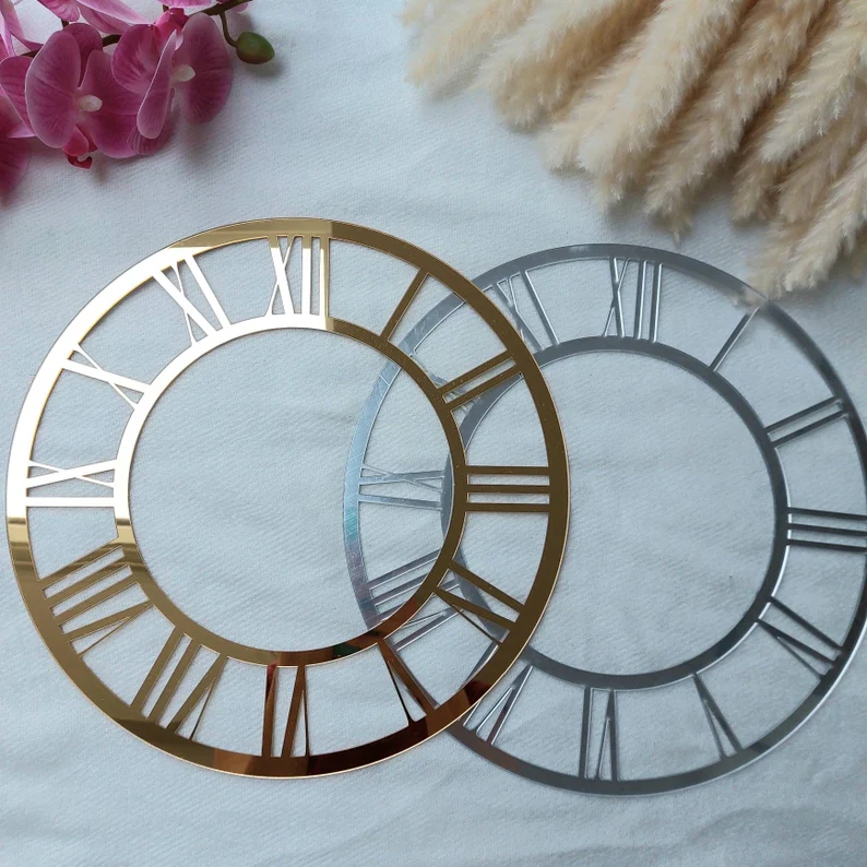 European Retro 3D Gold Acrylic Mirror Clock Large Roman Number Quartz Wall Art Needle Display Home Decorative Wall Clock