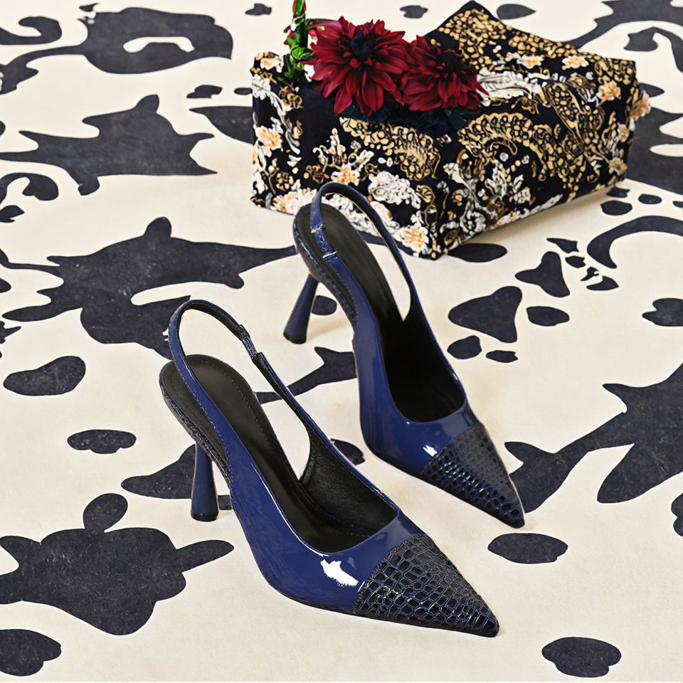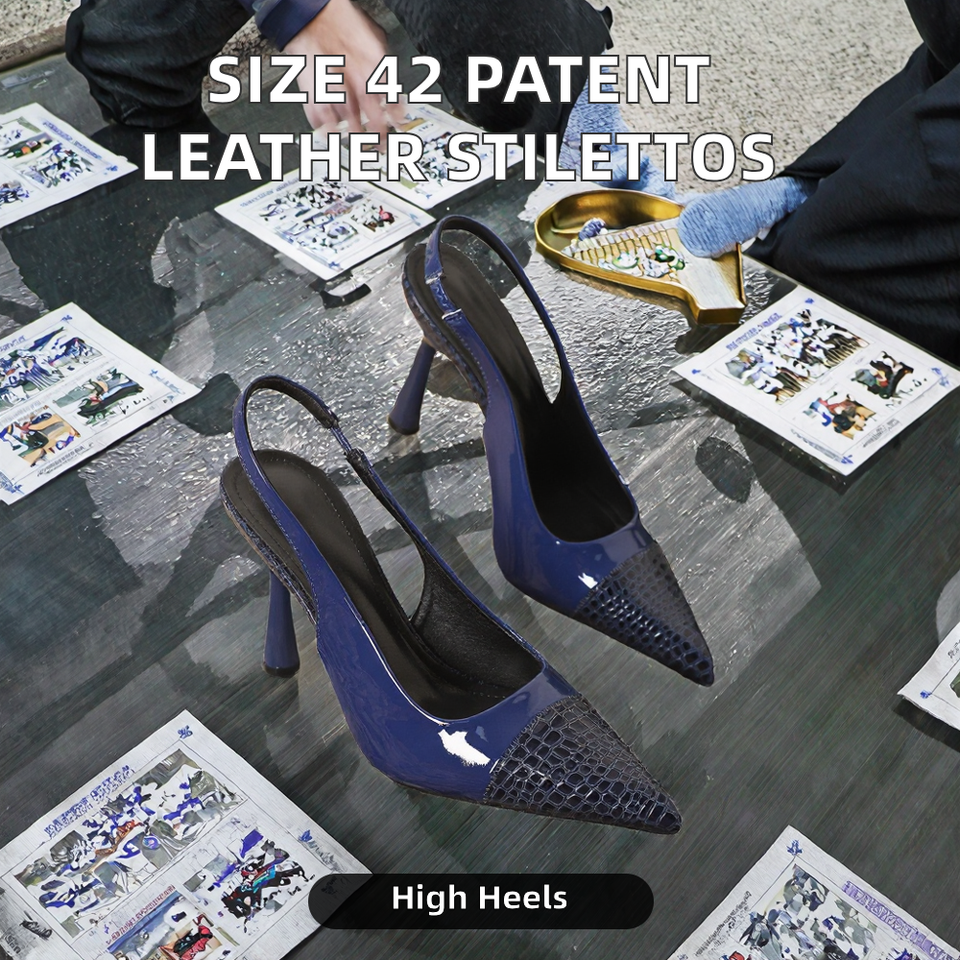 Sandali con Tacco Alto da Donna Taglia Europea 42, Punta a Spillo, Esterni, Retro Aperto, in Pelle Verniciata, Tacco a Stiletto in PU, Aumento di Altezza