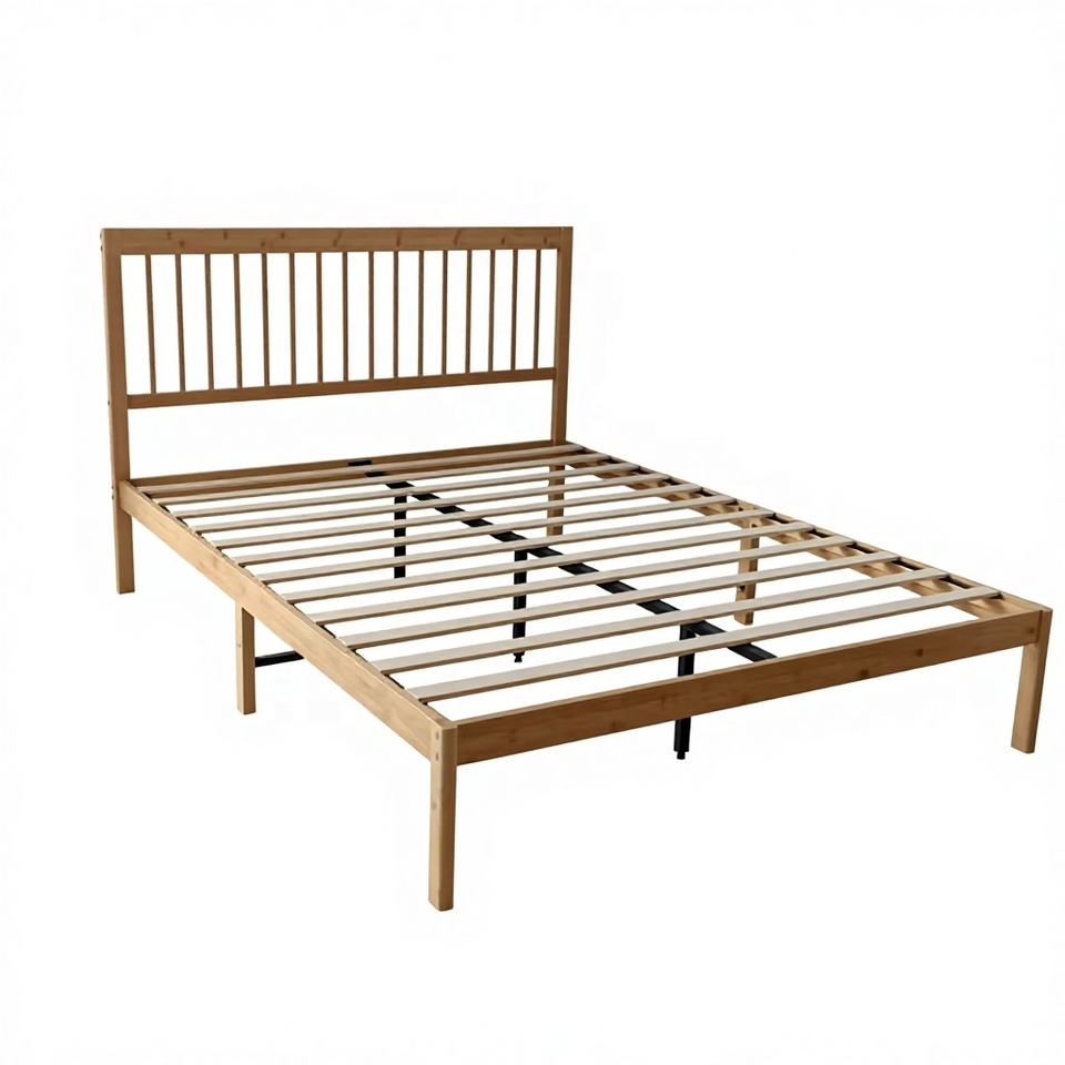 European Solid Wood Platform Bed Frame with Metal Slats Storage Eco-Friendly & Durable Easy Assembly Noise-Free Bamboo Headboard