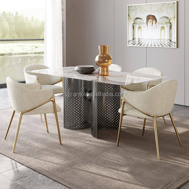 Stile europeo sala da pranzo mobili moderni di lusso sedie da cucina in acciaio inox accento poltrona per il tempo libero con gamba d'oro