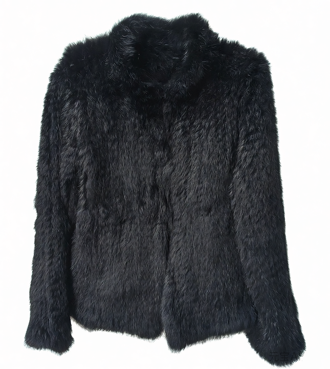 Cappotto Lungo Casual da Donna Invernale in Stile Europeo, Eco-Friendly, Morbido e Soffice, in Lana e Pelliccia di Coniglio Bianca Tinta a Mano, con Scollo a V