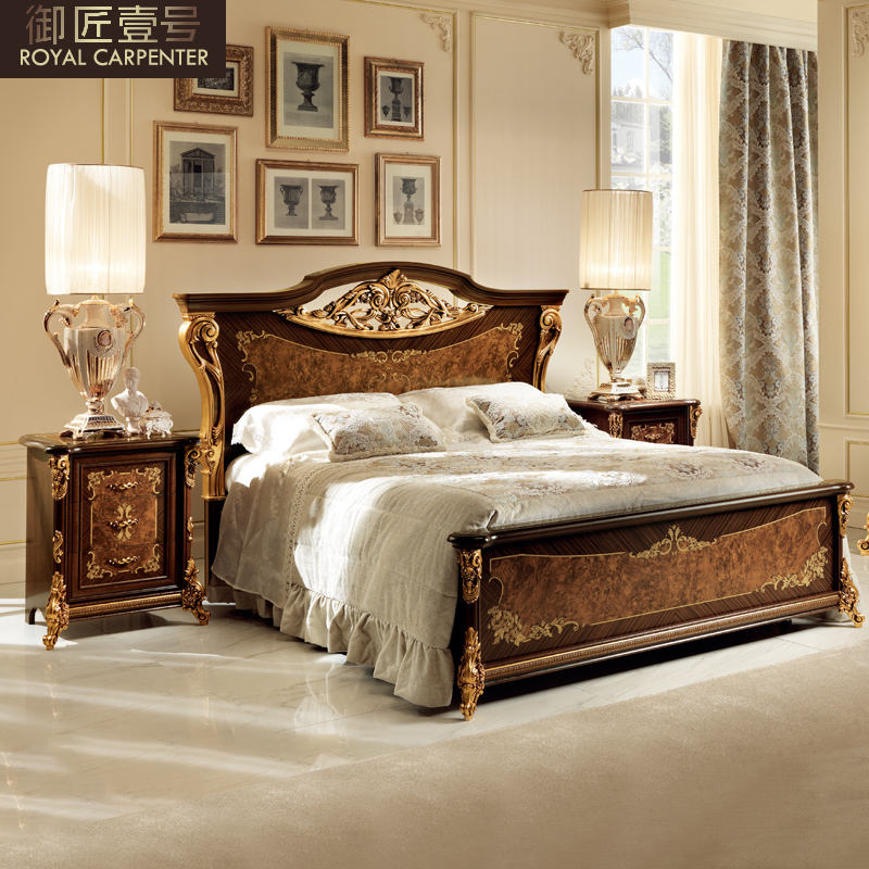 Letto Matrimoniale in Legno Massello Stile Europeo Italiano 1,8m con Contenitore per Camera da Letto Nuziale Arredamento Classico