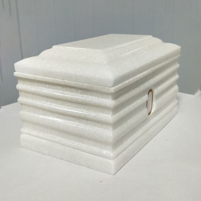 Urna Cineraria in Stile Europeo in Pietra di Giada con Finitura Lucida per Uso Commemorativo, Urne Funerarie Quadrate in Pietra Naturale Bianca
