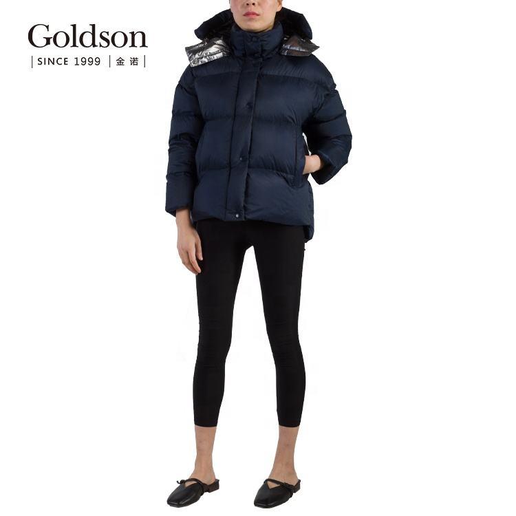 European Style Long Women's Bomber Jacket for Cold Winter Waterproof With Down Filling Nylon/Polyester Lining Decorative Pocket
