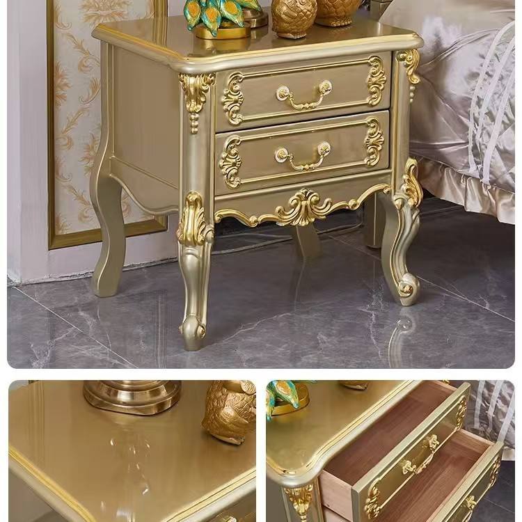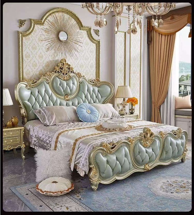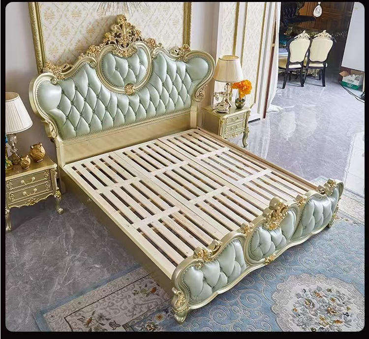 European Style Luxury Double Bed Bedroom Furniture Set Full Solid Wood Genuine Leather American Villa King Size Bed for Bedroom