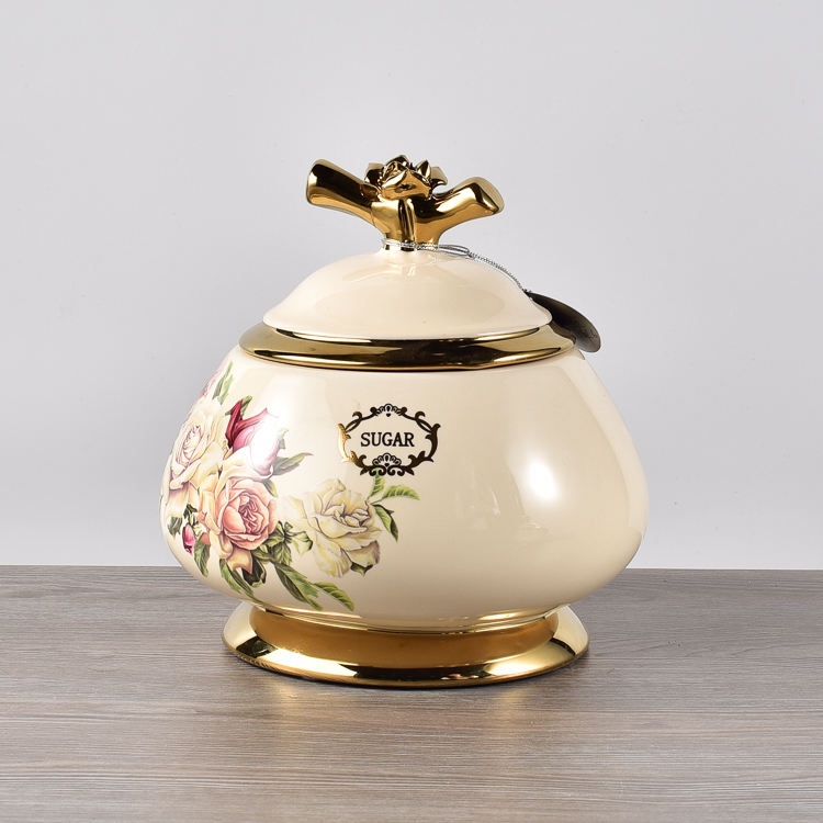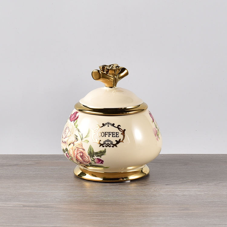 Stile europeo di lusso placcatura in oro prodotti per la casa di caffè tè zucchero cereali ceramica ermetico contenitore di conservazione degli alimenti con coperchio