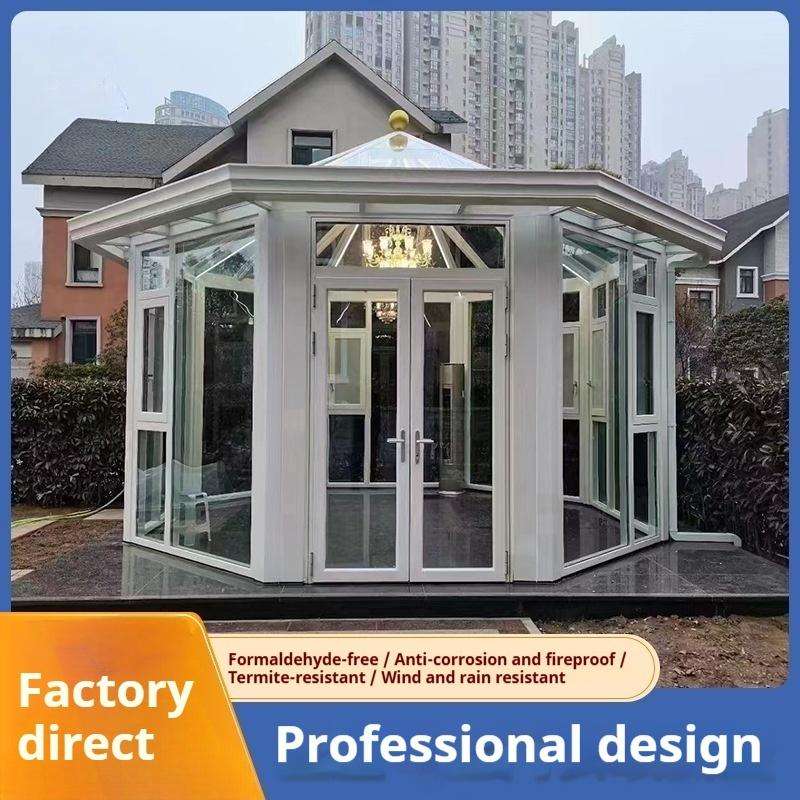 Veranda in Stile Europeo Moderno con Tetto in Vetro Temperato, Giardino d'Inverno Impermeabile con Caratteristiche di Ponte Termico Interrato in Lega di Alluminio