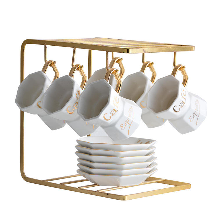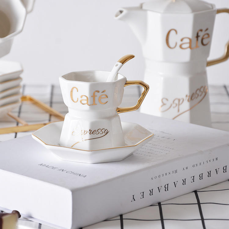 Tazze da caffè pomeridiano bianche in stile europeo set di tazze da tè in porcellana con supporto dorato