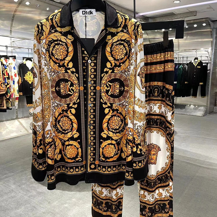 Pigiama in velluto europeo, adatto per uomo e donna, pantaloni a maniche lunghe con lettere di diamanti neri a caldo