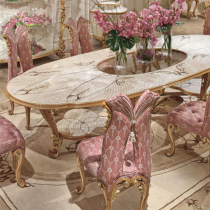 European Wood Luxury Royal Round Oval Dinning Table and 6 8 10 12 Chairs Set for French Dining Room Furniture Villa Home Apart