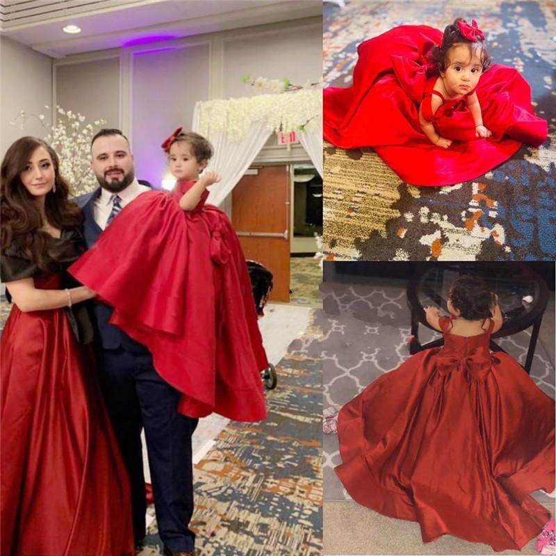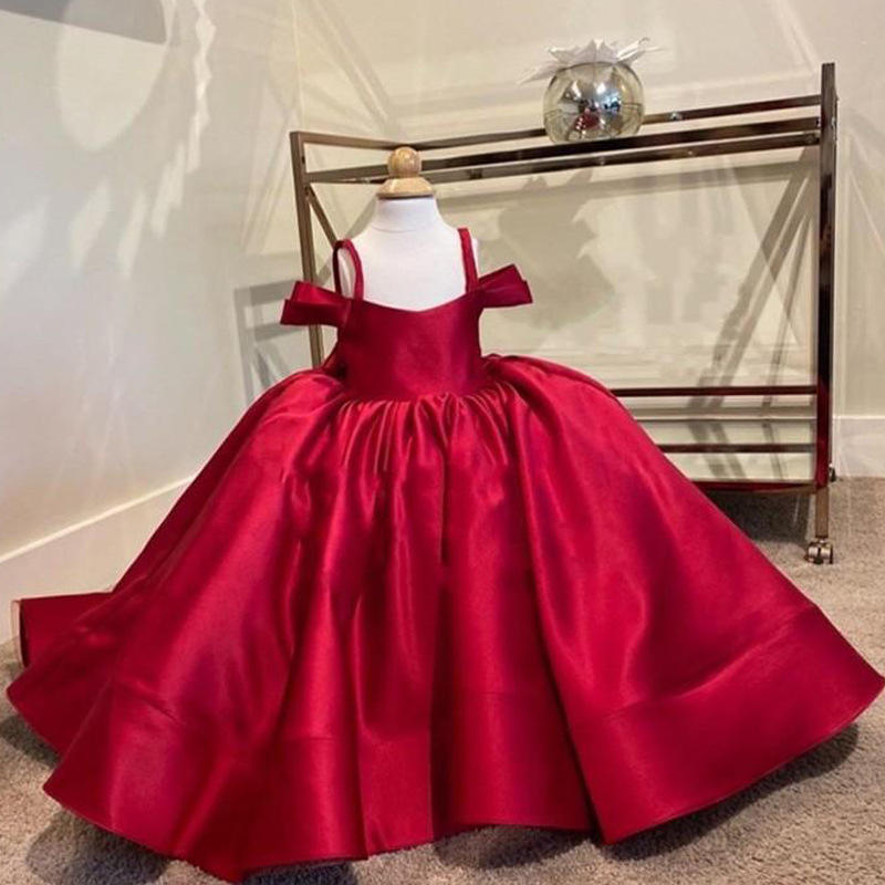 European and American Children's Catwalk Model Satin - Shoulder Train Evening Dress Lady Flower Girl Bridesmaid Wedding