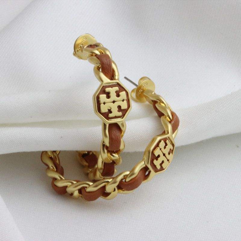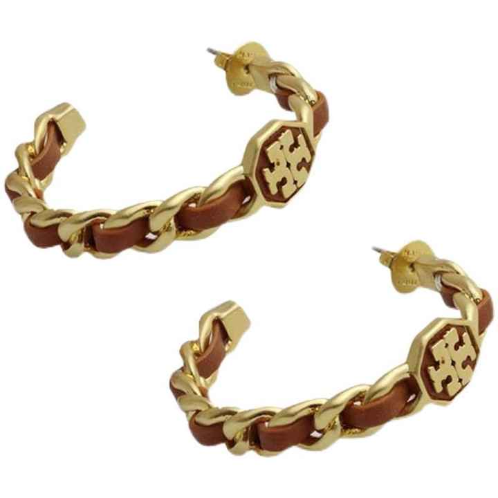Orecchini in Pelle Dorata Stile Retrò Europeo e Americano, Gioielli TB di Lusso con Texture Raffinata per Donna