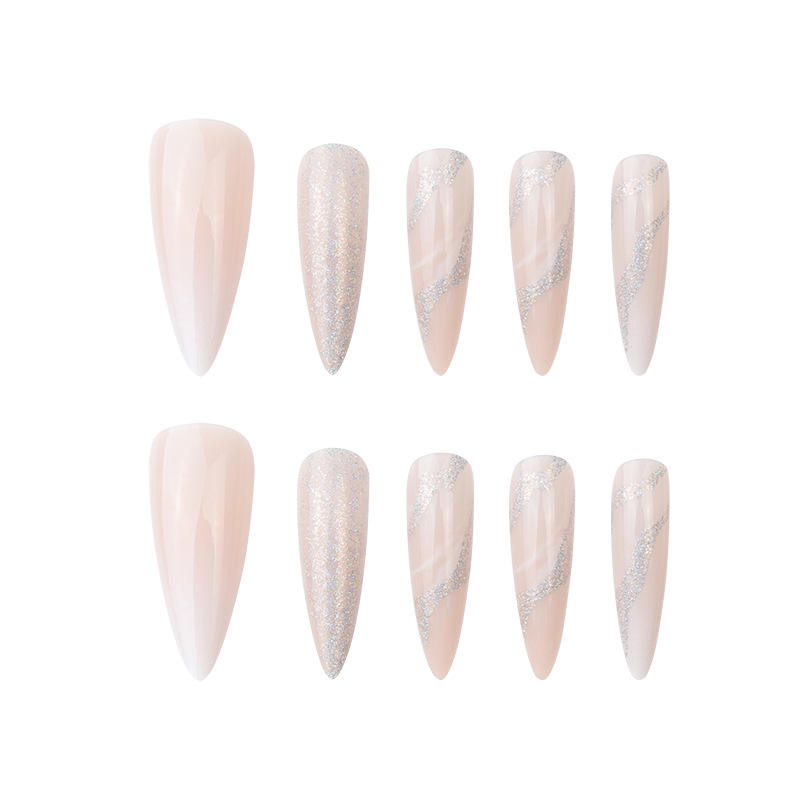 Europei e americani a punta lunga sfumata Glitter oro coriandoli stampa unghie scintillanti di media lunghezza