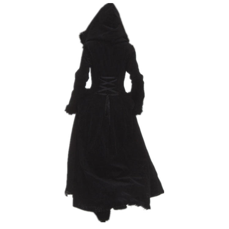 European and American Retro Fur Collar Hooded Single Breasted Large Hem Windbreaker Solid Color Waist Tied Coat Thickened Dress
