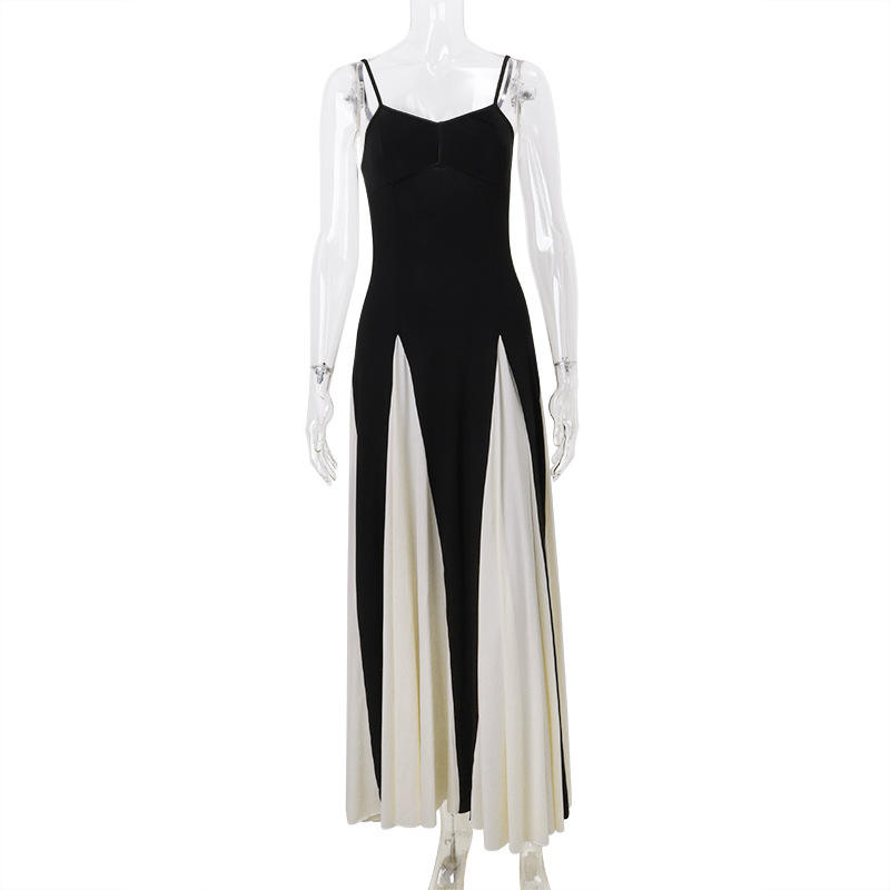 European and American Style Women's Clothing Fashion 2024 Summer New Elegant Dress Contrasting Color Suspender Casual Dress