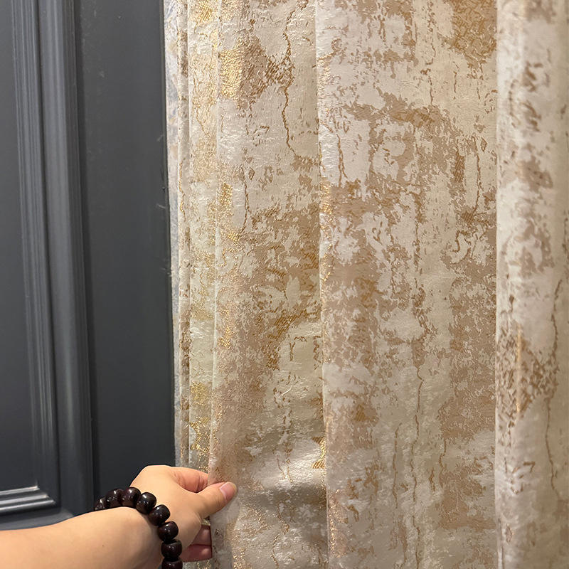 European-style Curtain Bedroom Living Room Beige Gold Jacquard High-end Curtain Fabric Floor Window Drooping Curtain