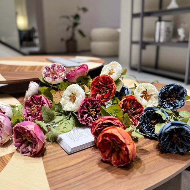 Composizione Floreale Artificiale Stile Europeo Retrò Serie Autunnale Quattro Rami Rosa Bruciata Austin per Tavola da Pranzo