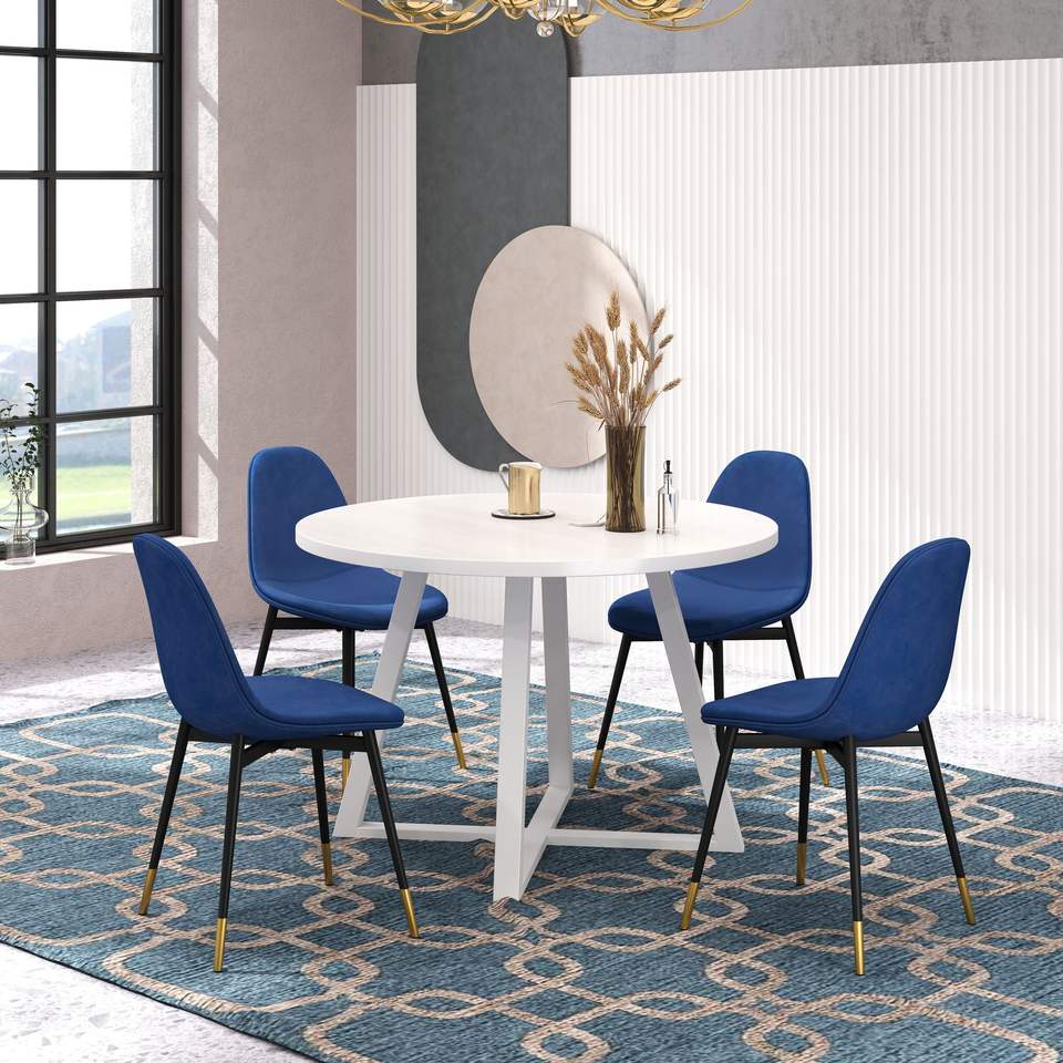 Set da Pranzo Rotondo Evatt in 5 Pezzi, Elegante Tavolo Blu con 4 Sedie per Sala da Pranzo