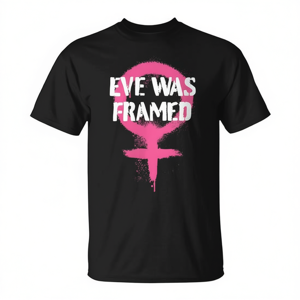 T-shirt grafica punk femminista con stampa Eve Was Framed, nera, unisex, girocollo, manica corta, streetwear