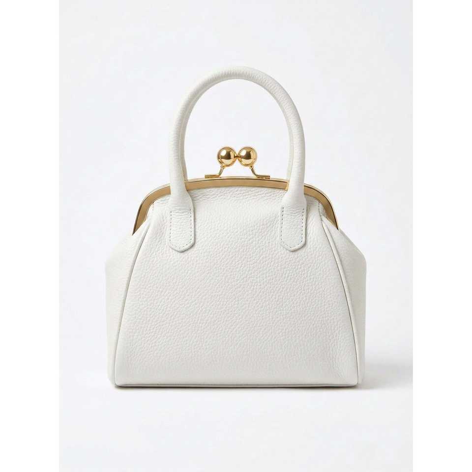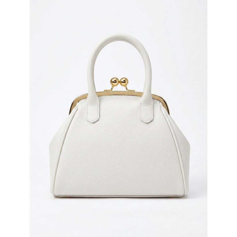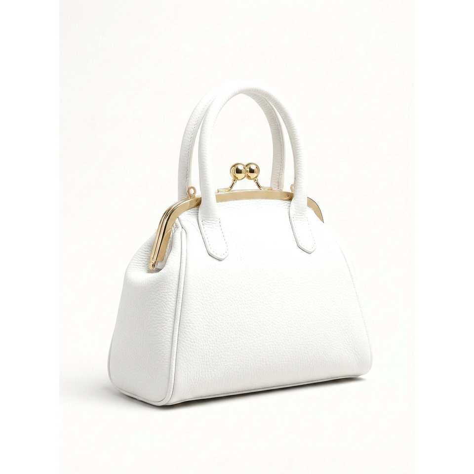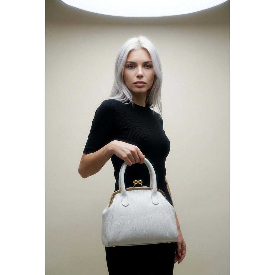 Borse da Sera in Vera Pelle Dollaro, Borsa Strutturata Bianca Capacità 1L, Chiusura a Patta, Tracolla ad Anello - Made in Italy - AP IDEA MODA-26078D