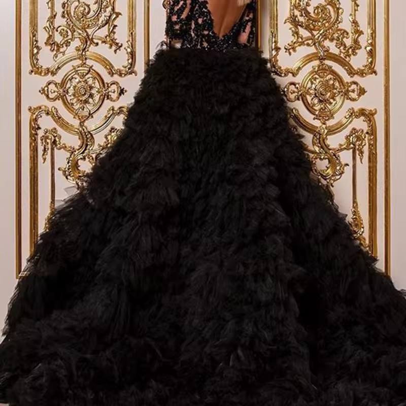 Evening Dresses Sexy V Neck Lady Prom Skirt Luxury Elegant Long Sleeves Ruffles Tulle Women Custom Size Colorful