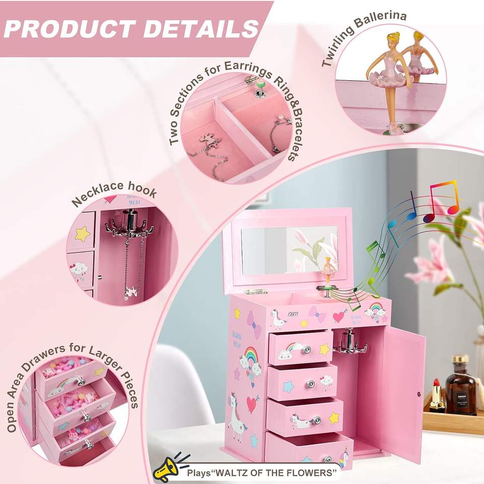 Nome del prodotto:Set di gioielli unicorno incluso carillon di gioielli per bambini a 5 strati