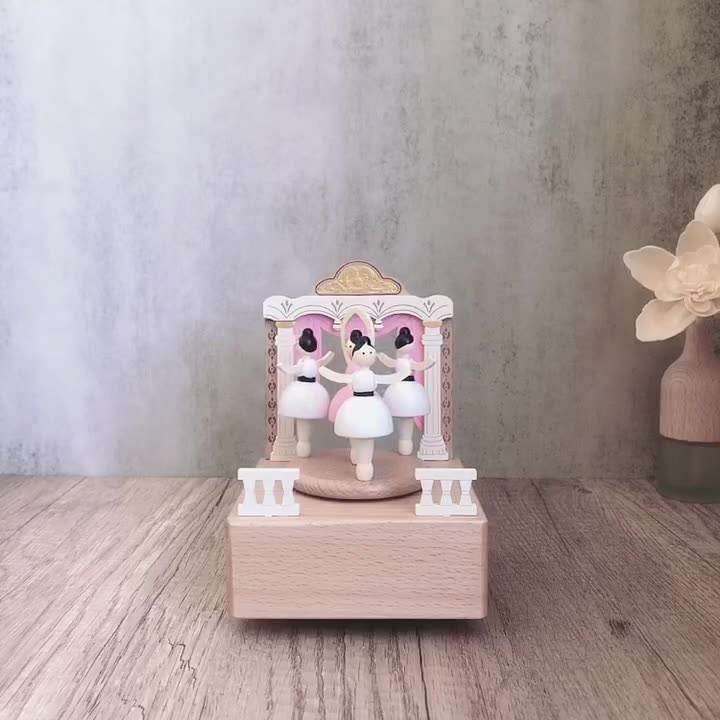 Ever Bright Ballerina Dancing Girl Music Box Beech Wooden Wind-up Carousel for Home Ornaments Handcrafted by Manufacturer