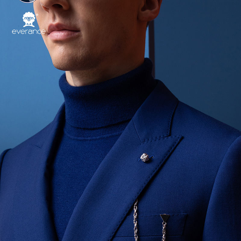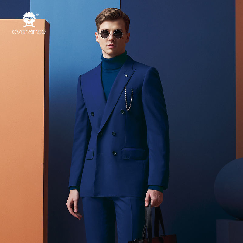 Abito da uomo Everance blu scuro con revers a punta, in tessuto Super 110's, doppiopetto, elegante, per matrimoni, cene e feste