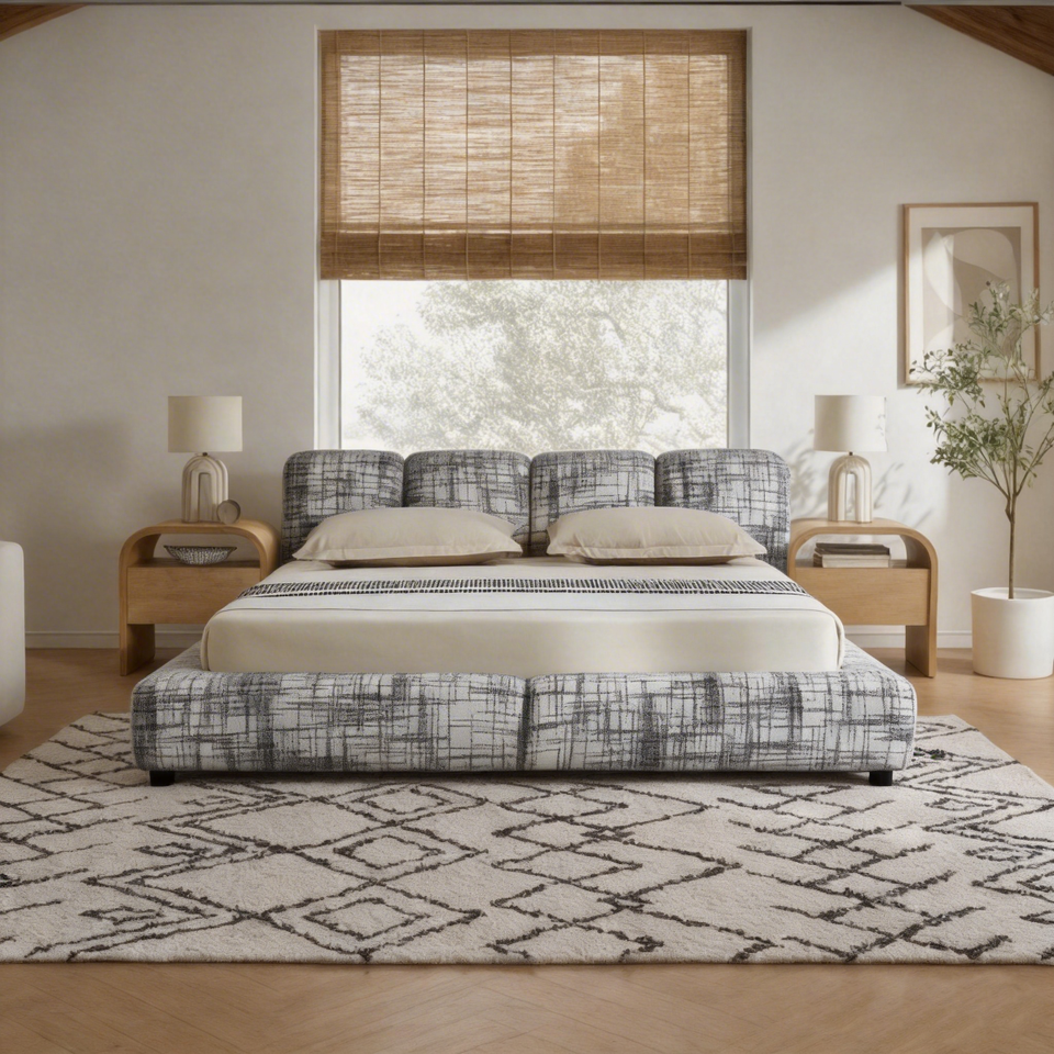Collezione Evergo 3D Max per Design d'Interni: Letto Moderno Rotondo in Legno con Rivestimento in Tessuto, Soluzione Chiavi in Mano