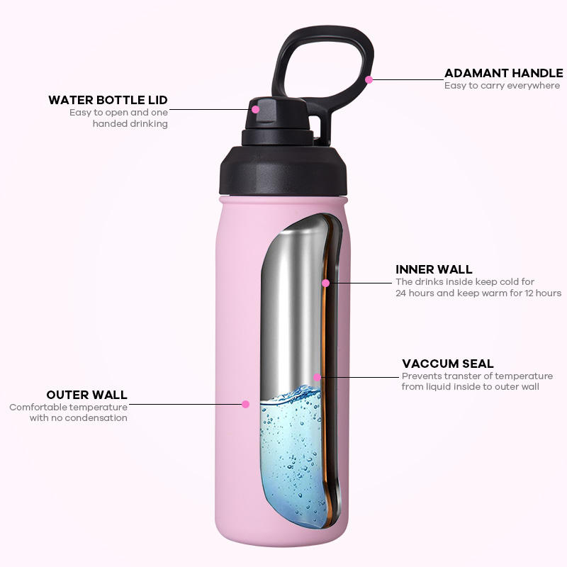 Everich ODM 18oz 32oz Stainless Steel Water Bottles Insulated Wide Mouth Vacuum Sports Large Water Bottle with Handle Lid