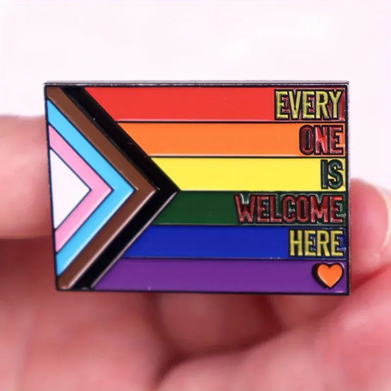 "Every One Is Welcome Here" Colored Flag Brooch Metal Enamel Pin Backpack Bag Lapel Badge