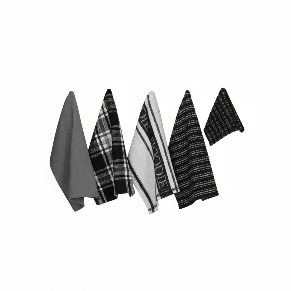 Set da cucina per la raccolta di tutti i giorni, strofinaccio per stoviglie, nero, 5 pezzi | Importazioni di Design
