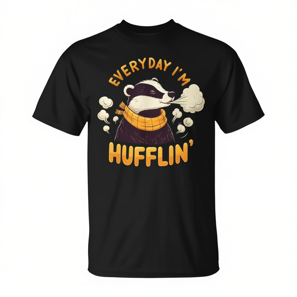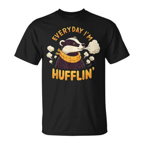 T-shirt Everyday I'm Hufflin' Honey Badger, maglietta promozionale nera per adulti, unisex, girocollo, a maniche corte