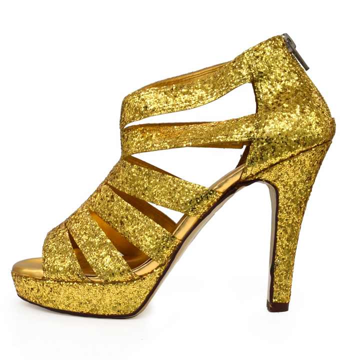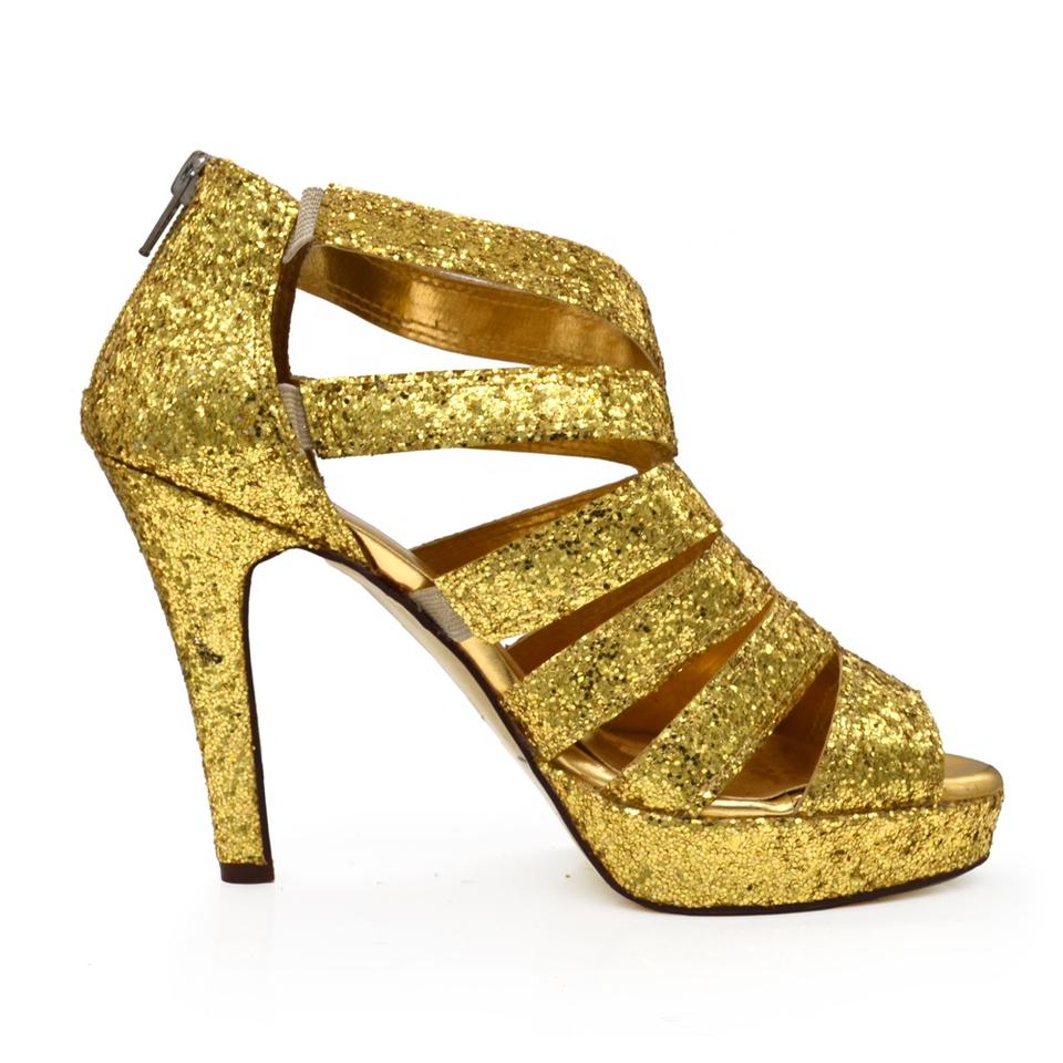 Evkoodance Scarpe da Ballo Professionali con Tacco 10cm, Gialle Scintillanti, Sexy, Consegna Rapida, per Danza Latina/Tango/Samba