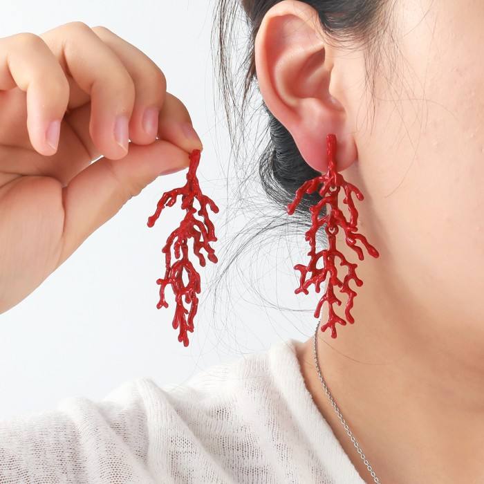 Orecchini pendenti esagerati di grande colore rosso corallo per le donne