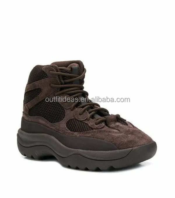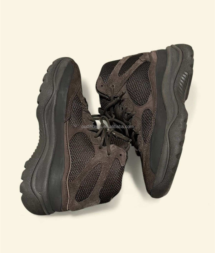 Stivali Sportivi Trendy da Uomo con Suola Chunky Esagerata, Stile Originale Kanye West, Sneaker in Pelle Scamosciata Marrone Olio, Stivali Desert Boot Unici