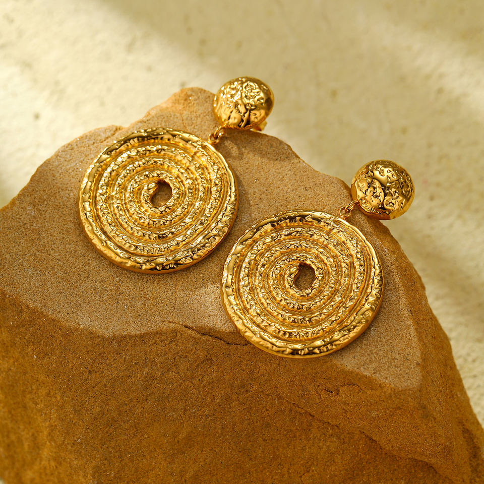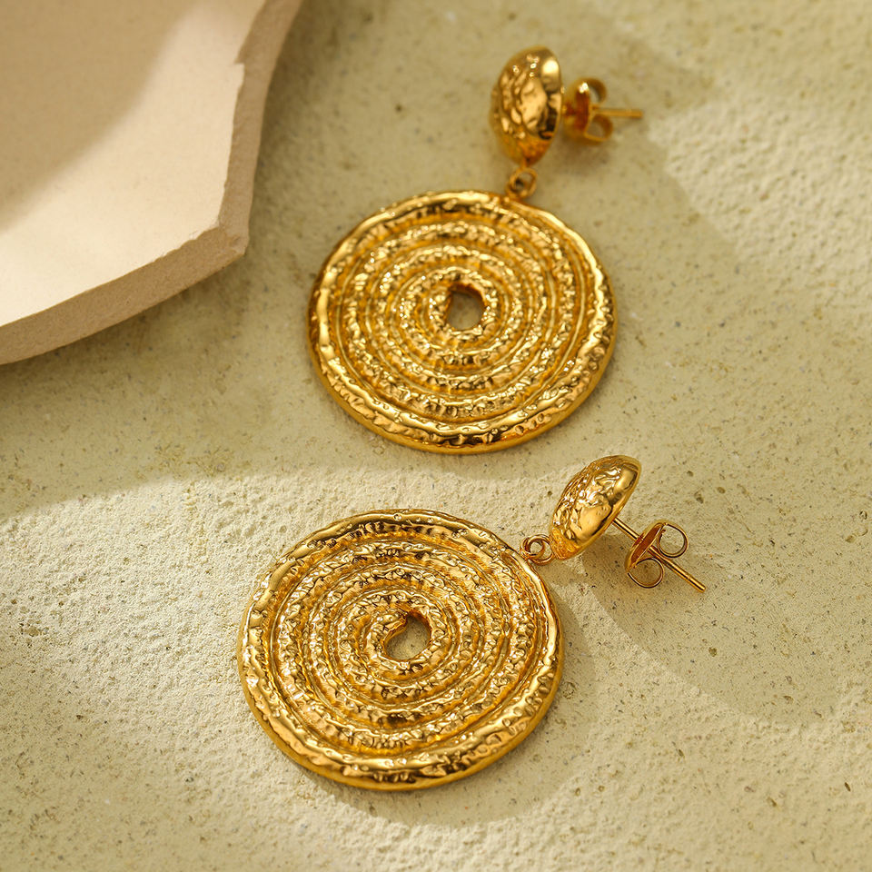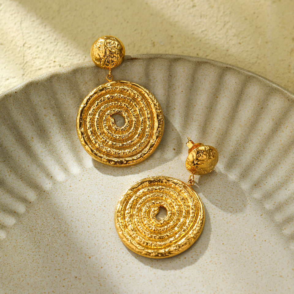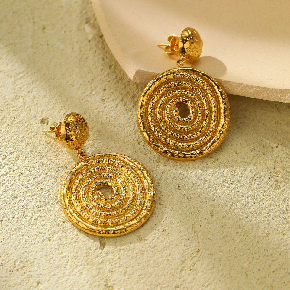Exaggerated Circle Drop Earrings Party Gold Plated Stainless Steel Women Studs Earrings Trendy Jewelry Wedding