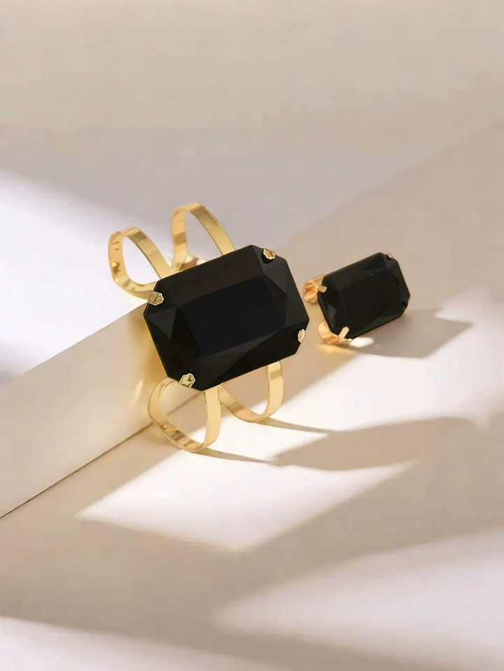 Exaggerated Ruby and Emerald Bracelet and Ring Set - Women's Limited Edition Design Jewelry Set NZBR-0006