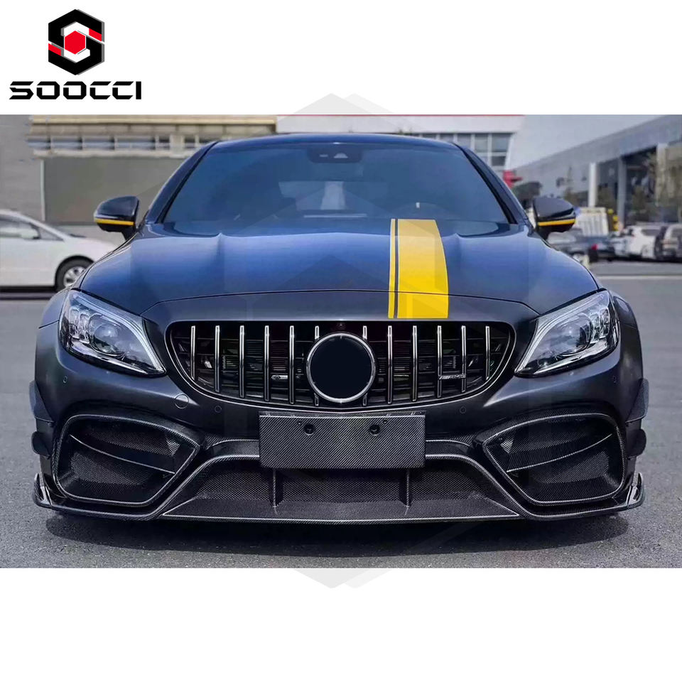 Eccellente installazione paraurti anteriore stile IMP per Mercedes-Benz classe C W205 C200 C300 Sport AMG C63 mezzo paraurti anteriore in carbonio