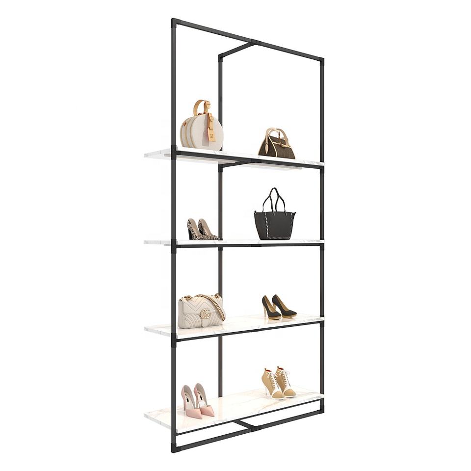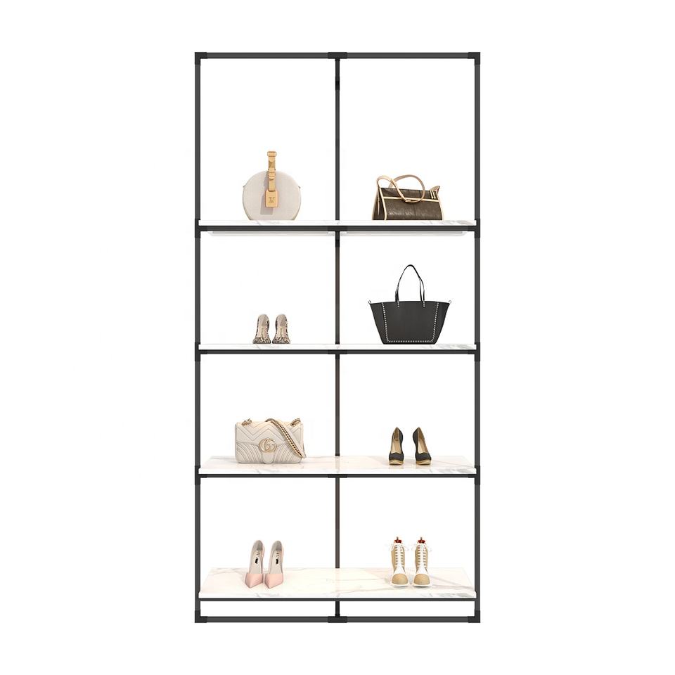 Scaffali in metallo di ottima qualità su misura in acciaio inox nero espositore da parete per il negozio di borse